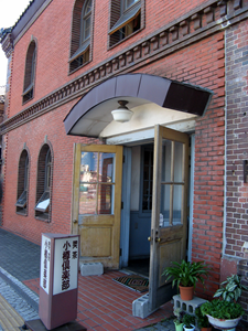 運河プラザから祝津方面に歩いて行くと煉瓦造りの建物に出合う。看板を見ると「小樽倶楽部」と書かれており、その下のプレートには小樽市指定歴史的建造物、指定番号第13号と書かれていた。この13号と言っている範囲はこの「小樽倶楽部」だけを指すのではなく、北側が小樽市博物館、南側が運河プラザの辺り一帯を指すようだ。